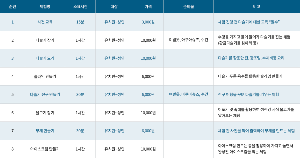 다슬기 체험 신청